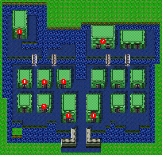 5) Weapon Shop: 6) Rarsa, the fortune-teller - will give you a hint for 100 G Search the shelf west of Rarsa to find a Vacuum 7) Tavern Possible apprentice location 8) Brantu's Lab |