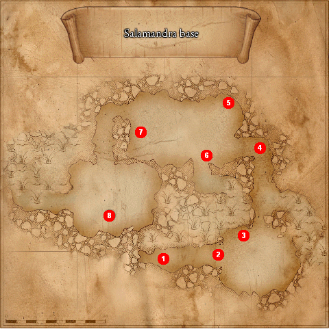 2) Cast Aard to break barrier 3) Trunk: Curses and the Cursed 4) You will meet up with your ally (Siegfried or Yaevinn) here 5) Salamandra Mage Stone of Power Circle of Waning Magic - Yrden +50% Crate: Sun Rune 6) Alvaro's Portal 7) Azar Javed 8) Laboratory Enemies: |