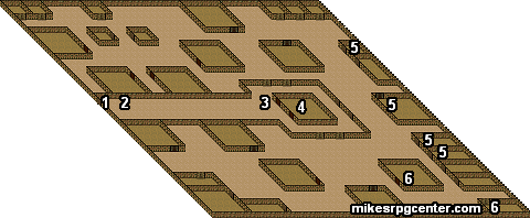 1) Entrance/Exit 2) Desert Runners will surround you - defeat their robot and they will accept you as allies 3) Tuskon - he will tell you his plan for ambushing the RAM forces |