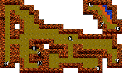 1) Entrance/Exit 2) Wing of Wyvern 3) 288 G 4) Spring of Life - restores HPs and MPs 5) Strength Seed 6) Magic Knife |