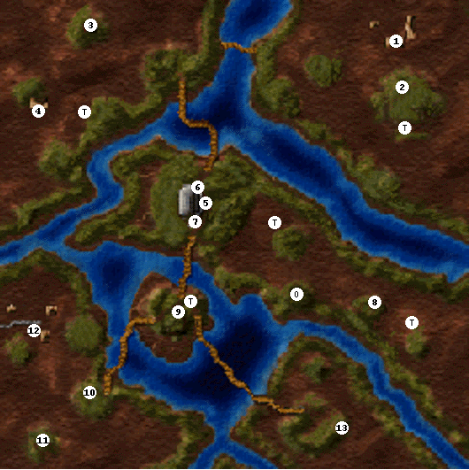 O) Obelisk 1) Miner's Only (Tavern) 2) Barrow IX 3) Barrow X 4) Haunted Mansion 5) Stone City 6) Fire Resistance Pedistal 7) Mind Resistance Pedistal 8) Test of Accuracy 9) Cauldron - +2 Fire Resistance (Perm) Fruit Trees |